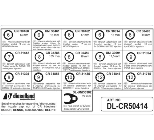 DL-CR50414. Keys set(16 pos) mounting/dismounting CR inj. nozzle nut