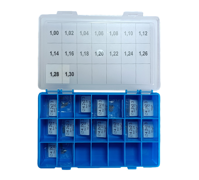 DL14CR2-229. Set of adjustment shims, VFK type CRIN, Ø2.3×4.2 (thickness range 1.00-1.30 mm), Bosch, step 0.02 mm.