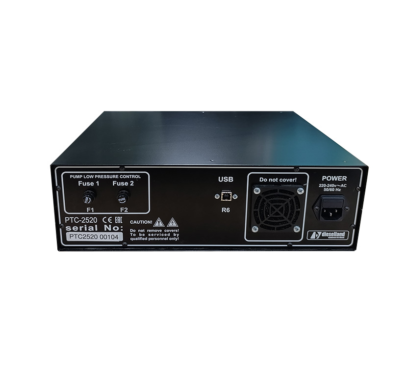 The “PTC-2520” device is designed for the supply of user-programmable control signals for the pressure regulators of the test system and injection pump of the Common Rail system to verify their operability.